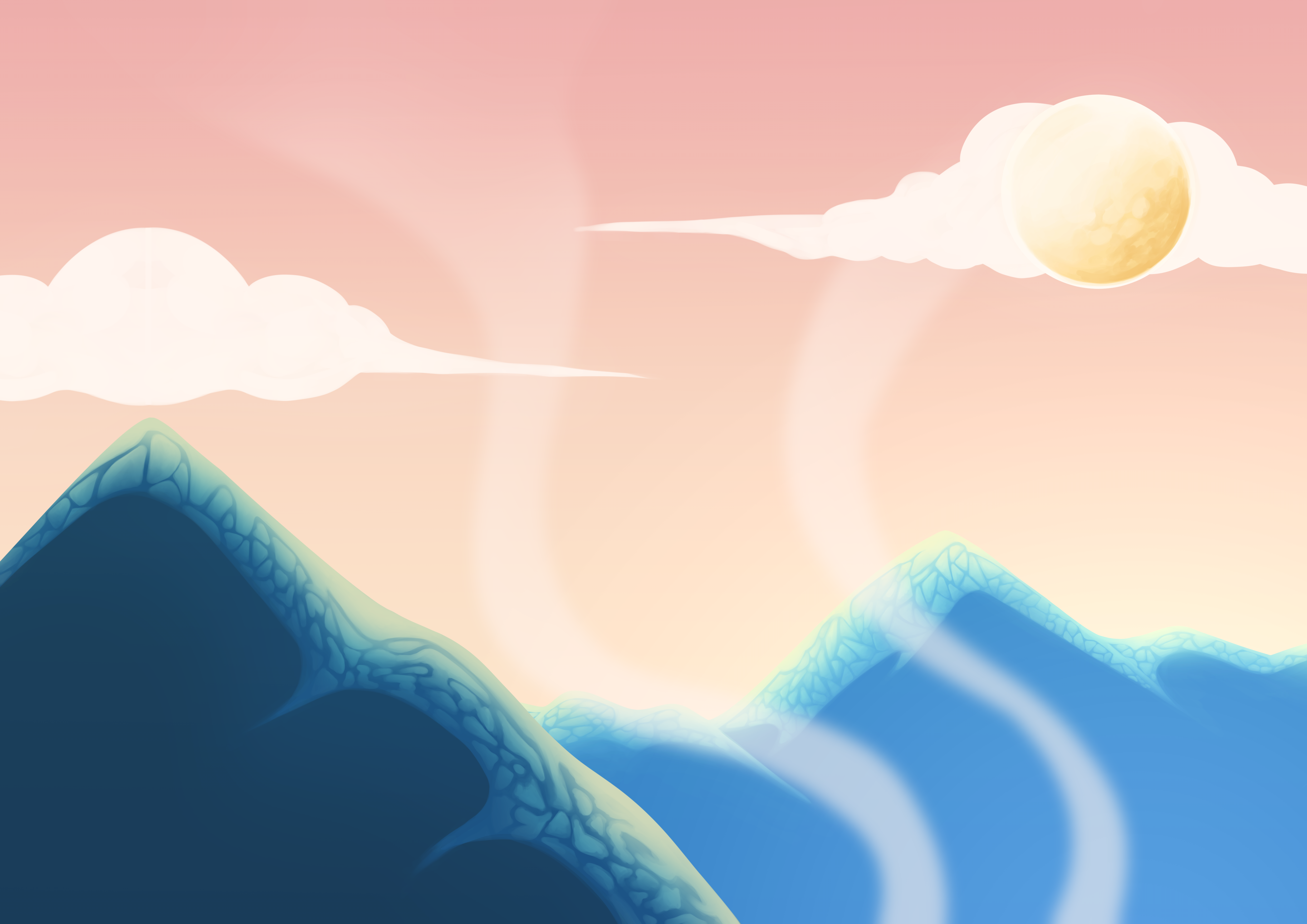 I made full-spread digital paintings with a focus on surrealism, as well as additional sticker designs. All artwork was created in Clip Studio Paint, with InDesign, Photoshop, and Illustrator being used as needed.