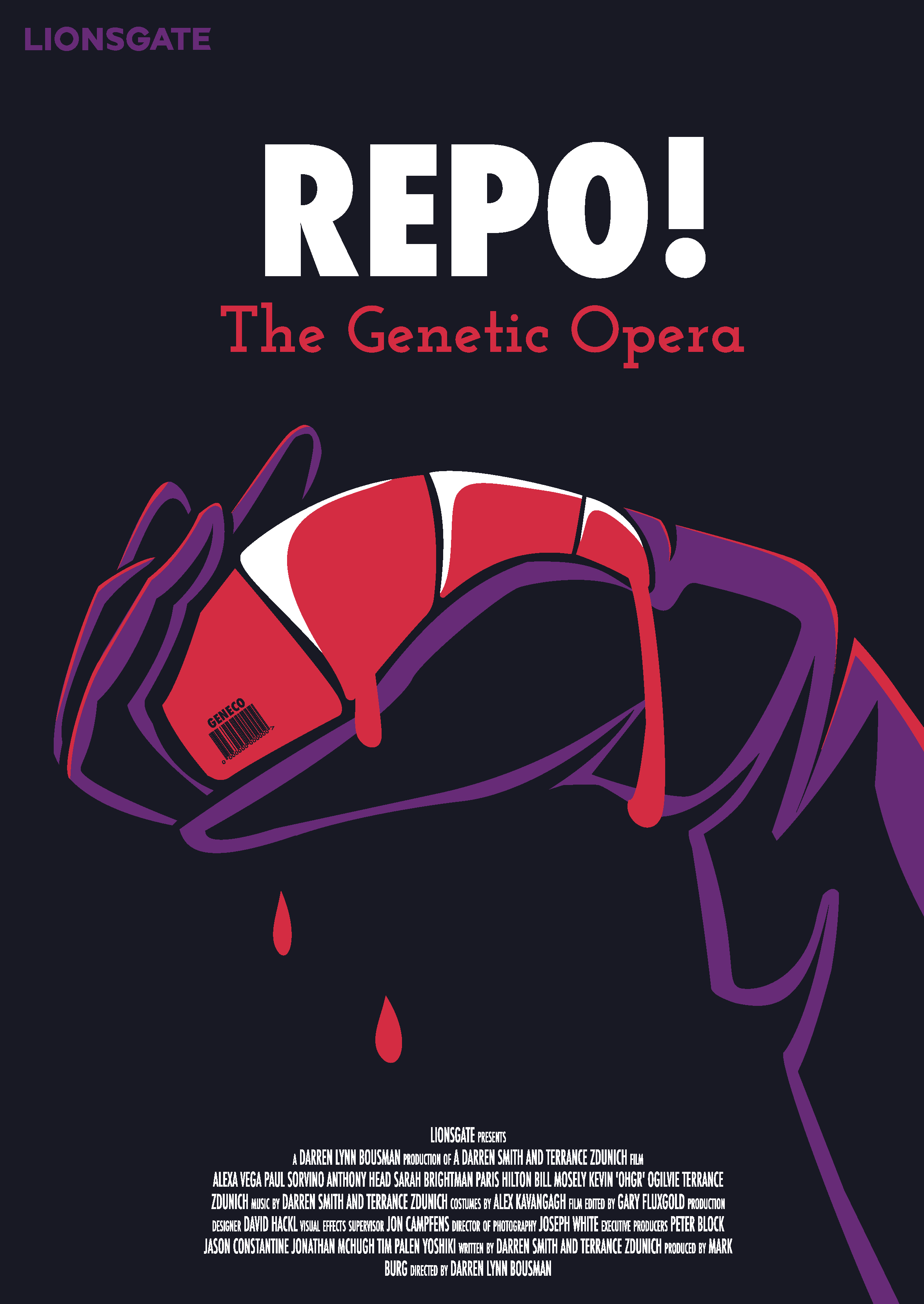 An assessment that revolved around picking a movie and making two new poster designs to promote the movie. The movie I picked for this was Repo! The Genetic Opera. The movie is a sci-fi/fantasy/horror musical that revolves around a dystopian future in the distant future.